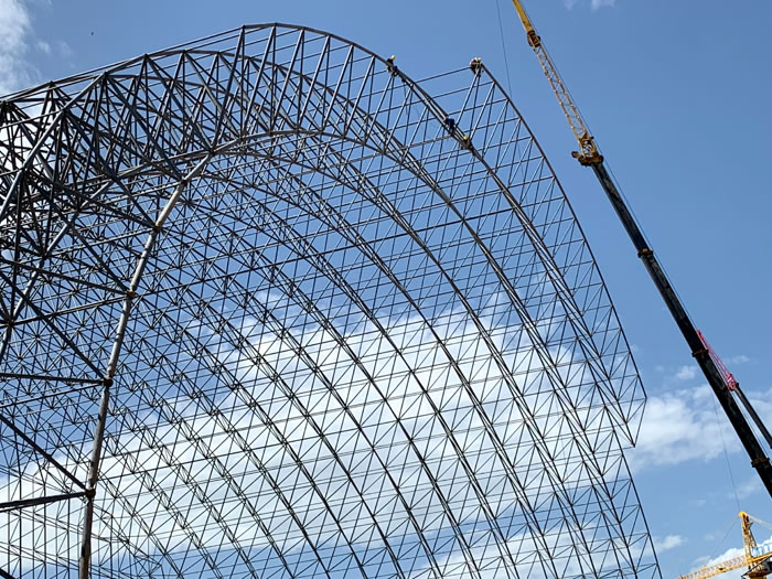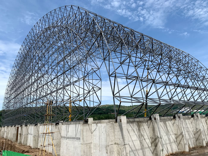 (2)网架加工前应对现场尺寸进行复测,确认无误后方可进行加工、安装;网架制作、运输、安装应遵守《空间网格结构技术规程》JGJ7-2010、《钢网架天门螺栓球节点》JG/T 10-2009、《钢网架天门螺栓球节点用高强度螺栓》 GB/T 16939-2016、《钢结构天门工程天门施工规范》 GB50755-2012、《钢结构天门工程施工质量验收标准》 GB50205-2020。